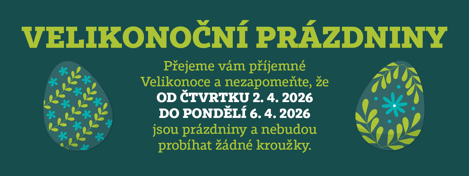 Rádi bychom vás informovali, že všechny naše zájmové kroužky budou mít zimní pauzu - a to od pondělí 15. 12. 2025 až do neděle 4. 1. 2026. V tomto termínu u nás nebudou probíhat žádné zimní aktivity.